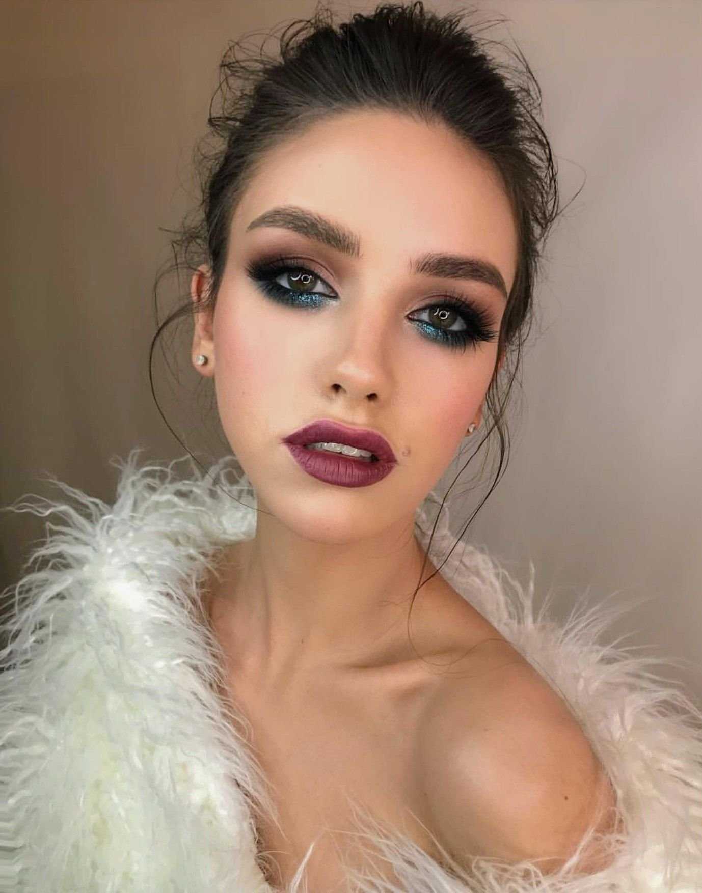 В этих глазах действительно можно утонуть, и это обязательно следует подчеркнуть при помощи макияжа. Новогодний мейкап придаст глазам насыщенности, если использовать темные тени в сочетании с синей или голубой подводкой