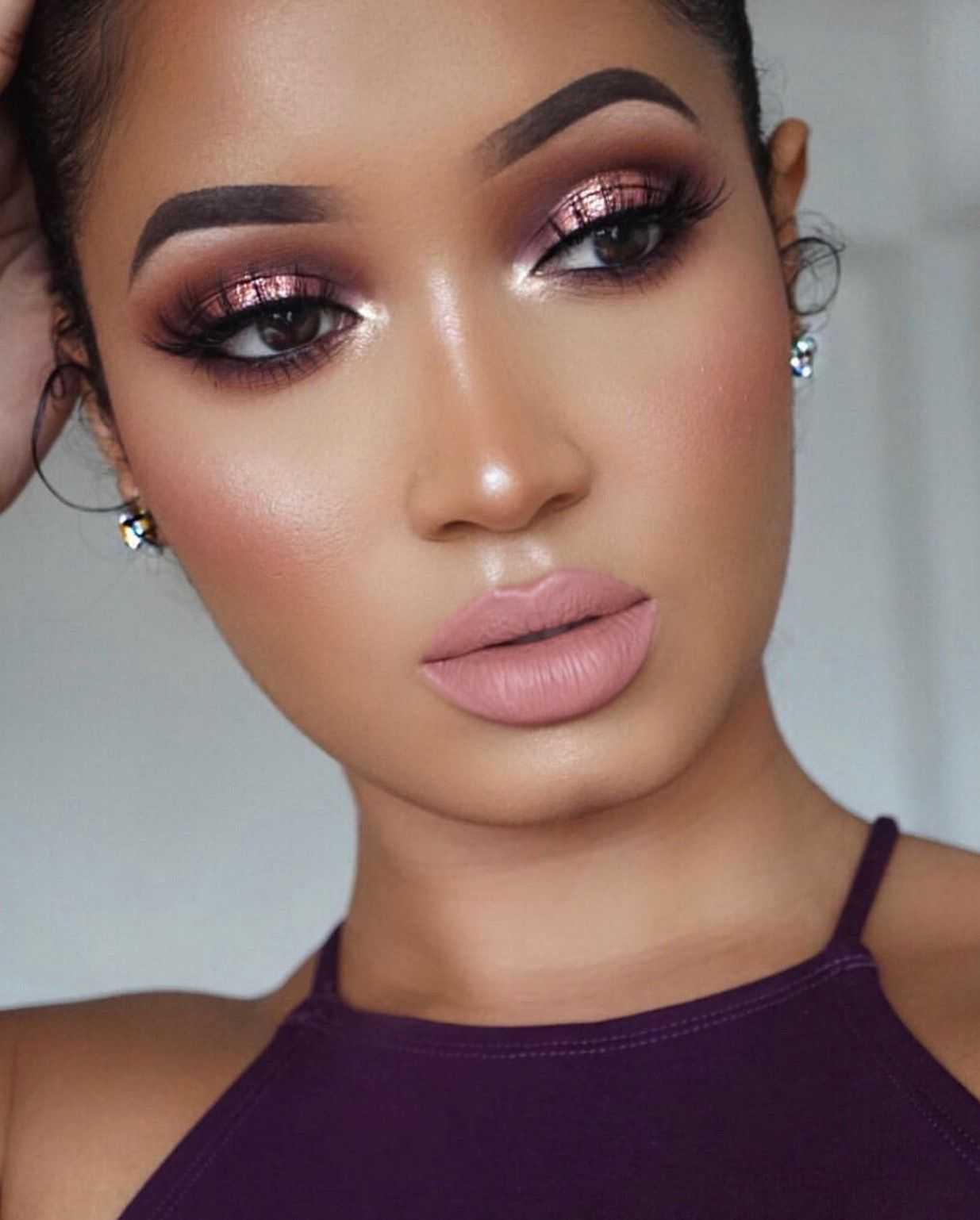 Макияж для карих глаз будет смотреться идеально, если его выполнить в бронзовых оттенках. Также неплохо сочетаются с темными глазами оливковый, зеленый и фиолетовый цвета. Девушки с карими глазами могут позволить себе легкий и при этом мерцающий макияж.