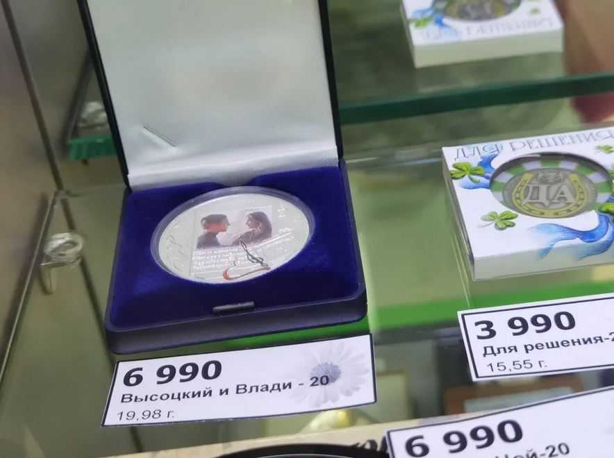 Но на коллекционные монеты посмотреть интересно. Банк, похоже, не обходится нынче производственным календарем, это раньше монеты выпускали к очередной годовщине чего-нибудь. Сейчас есть монеты, посвященные Цою, Высоцкому с Мариной Влади. Выбирай, что хочешь, хоть с корабликом, хоть с мотивацией. Коробочки в виде виниловых пластинок, правда, Высоцкого уже на бобинах слушали, а уж Цоя точно на кассетах.