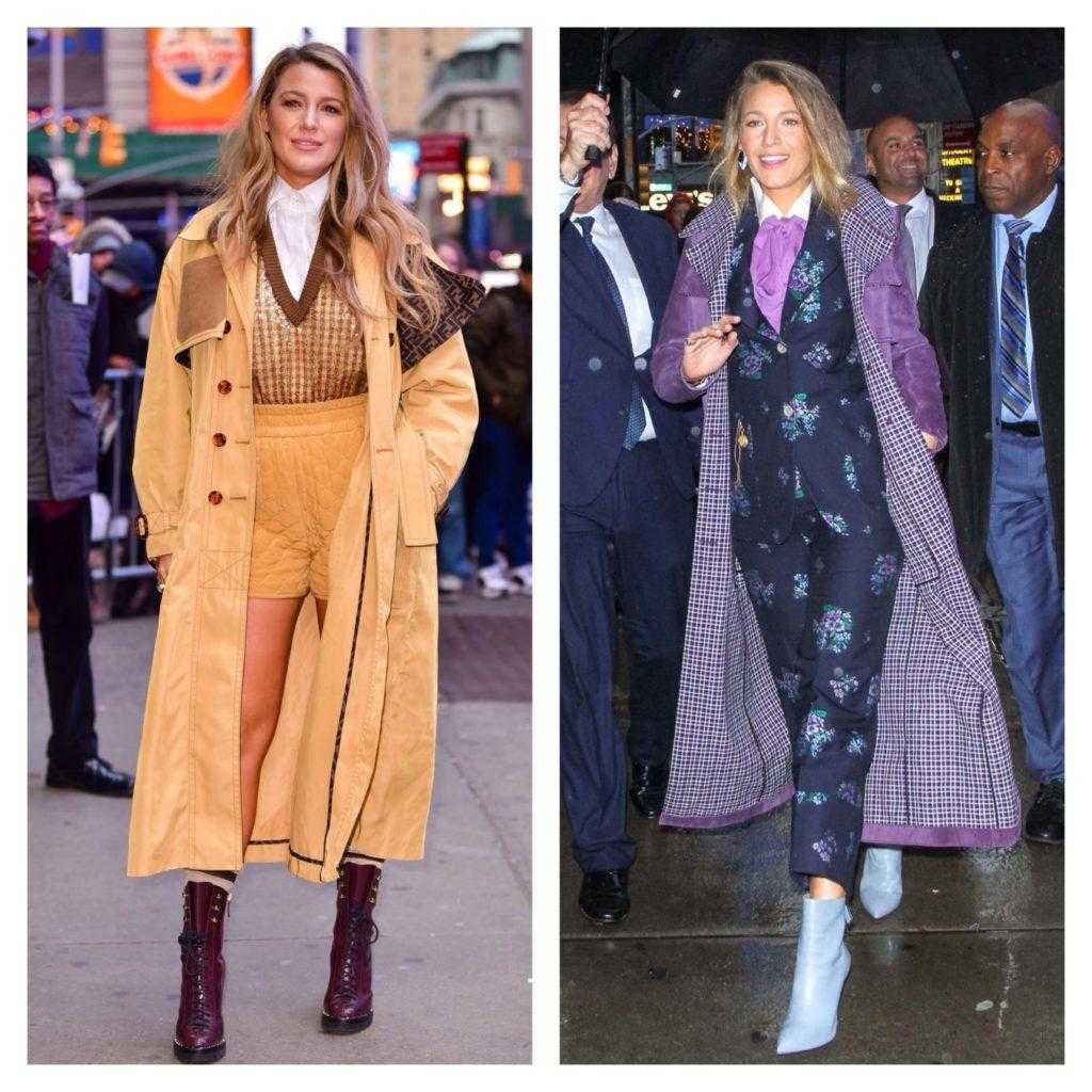 И в качестве бонуса – еще парочка стильных костюмов от Блейк Лайвли, один с брюками в розовом, другой – с пестрым мини и лохматыми ботфортами. «Неделька» на любой вкус от голливудской иконы стиля!