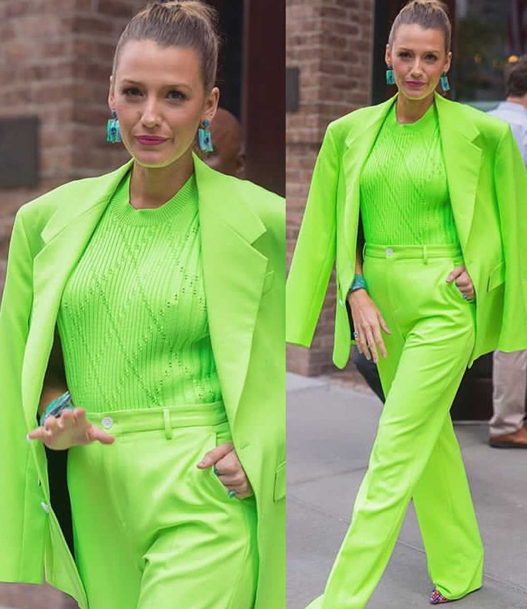 Не успели все налюбоваться элегантной и роскошной Блейк в бархате, как она резко сменила курс и появилась на публике в брючном костюме оверсайз ядовито-зеленого цвета из новой мужской коллекции Versace. Обычно актриса не спешит подхватывать самые горячие новинки, предпочитая классику. Но в этом сезоне она полна неожиданностей и загадок!