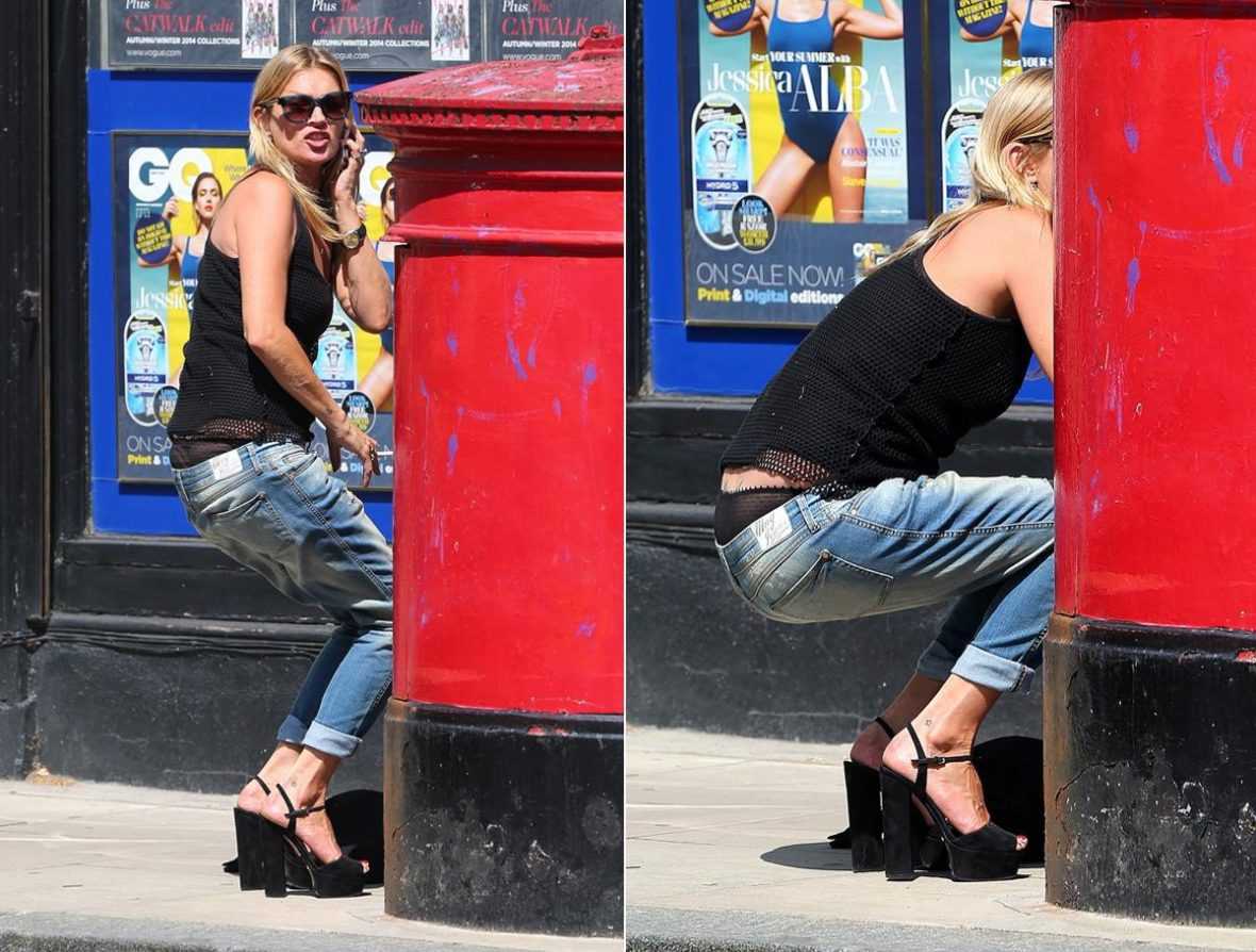 Английская модель решила, что лучше пусть народ увидит ее кружевное нижнее белье, чем то, как она курит прямо в общественном месте. Вот так позорно Кейт решила спрятаться от камер за колонной посреди одной из улиц Лондона.