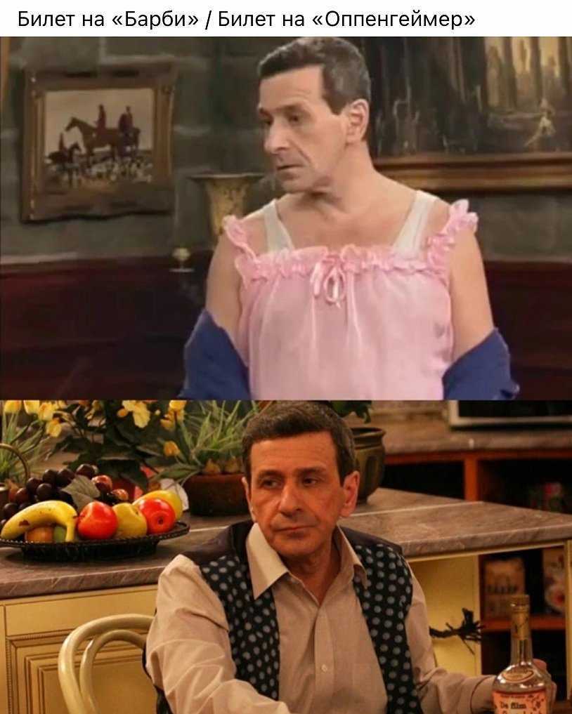 Контраст, похожий на разницу между «Барби» и «Оппенгеймером», пользователи сети находили в фотографиях бывшего лидера ЛДПР Владимира Жириновского, кадрах из сериала «Моя прекрасная няня» и снимках миллиардера Илона Маска. «Мальчик: идет на «Оппенгеймера». Мужчина: идет на «Барби». Дед: идет на «Миссия невыполнима»», — шутили в .