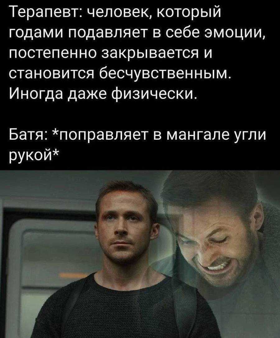 Причем в меме смысл немного поменялся. Кадр с орущим Гослингом совмещают со спокойным кадром. Из-за этого получается, что внешне герой остается спокойным, хотя его разрывает изнутри.