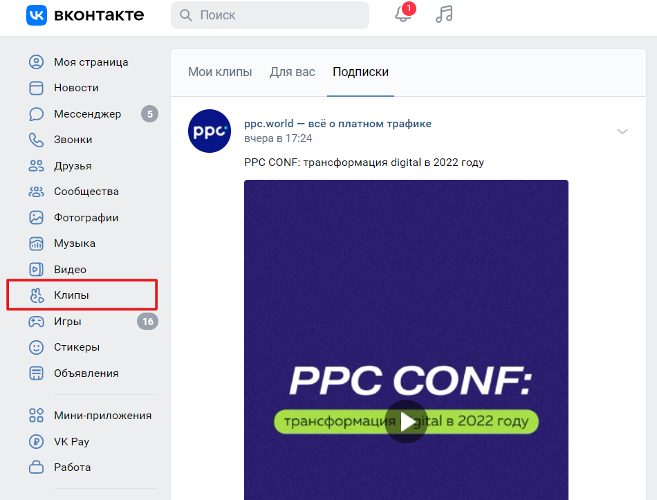 - Подписки — ролики друзей пользователя и сообществ, в которых он состоит.