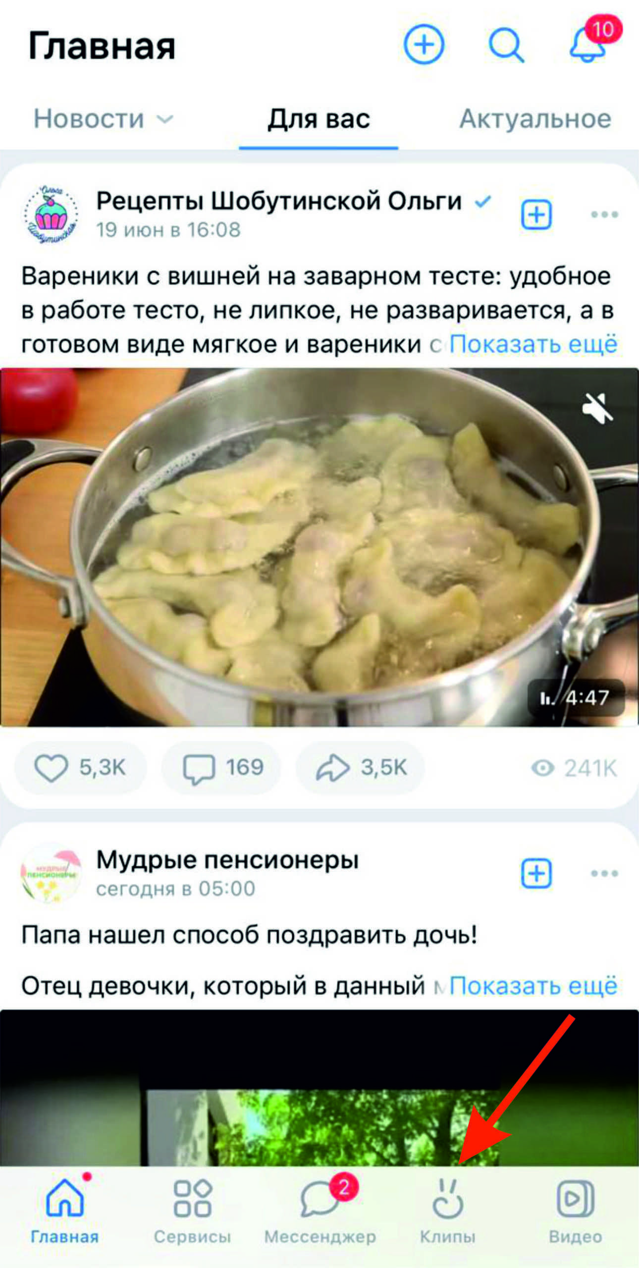 - Для вас — рекомендации, которые подобрала система на основе лайков, реакций и интересов.