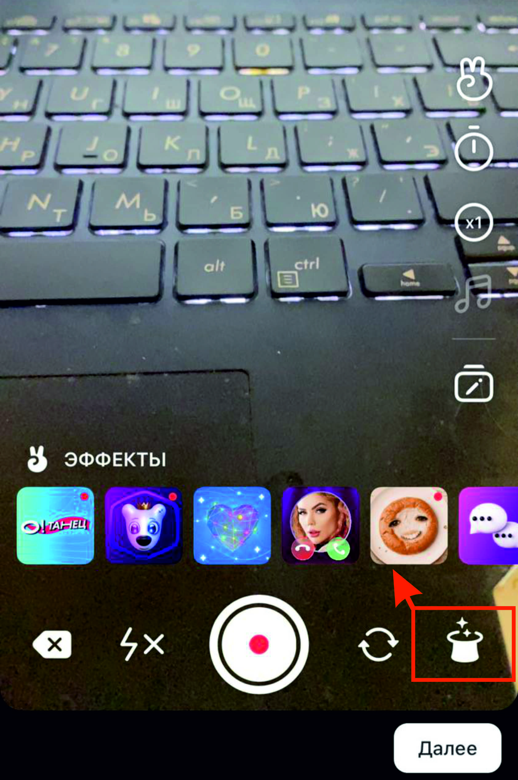 Записывая клип напрямую из приложения, вы можете сразу добавить эффекты.