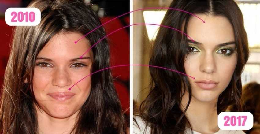 Кендал. Девушка обязана своей красотой ринопластике, увеличению губ филлерами, инъекциям ботокса.