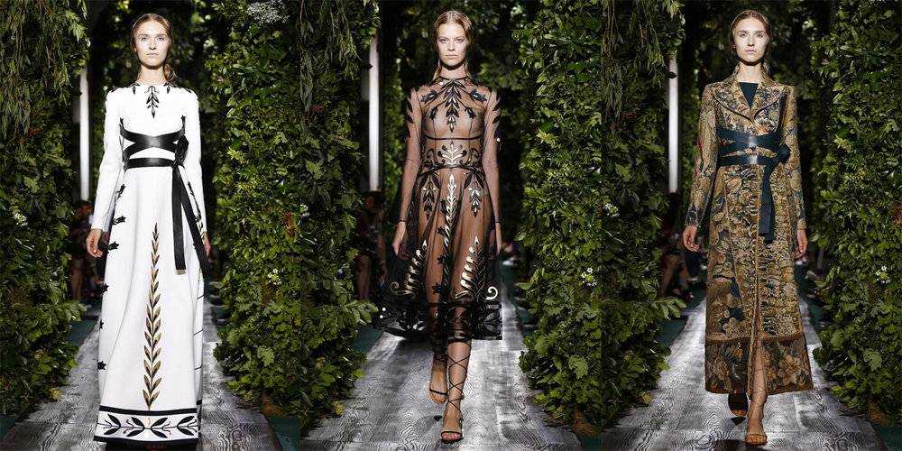 Модный дом Valentino возглавляют дизайнеры Мария Грация Кьюри и Пьер Паоло Пиччиоли. Сам основатель модного дома Валентино Гаравани присутствовал на показе в первом ряду в компании Ким Кардашьян. В этом сезоне дизайнеры заглянули в глубь столетий: в древнюю Грецию и Рим, в полотна художников прерафаэлитов.