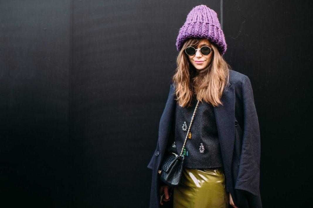 Для модного образа выбирайте шапки из натуральных материалов насыщенного цвета. Играйте на контрасте — яркая шапка отлично смотрится в комплекте с черным классическим пальто. Дополнить аутфит можно парой высоких кожаных сапог, утепленными шортами и рубашкой в тон шапке. Сумка-полукруг приглушенного цвета станет отличным завершением образа.