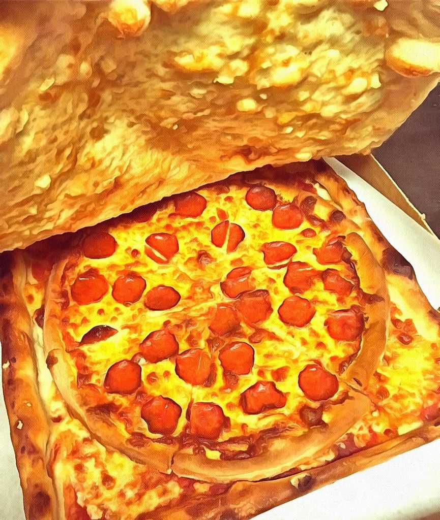 Пиццерия Винни в Бруклине, Нью-Йорк, вместо картонной коробки пиццу положила в большего размера пиццу, сделанную в виде коробки. Без отходов, поскольку пиццерия предлагает 100% пиццу и 100% вкусные. Данный вид пиццы дебютировал в 2016 году, и активно рекламируется в инстаграм. Нет больше ящиков для пиццы, загромождающих холодильник или мусор, который необходимо выкидывать. Вместо этого клиент получает как пиццу, которую заказал, так и бонусную пиццу в виде коробки.