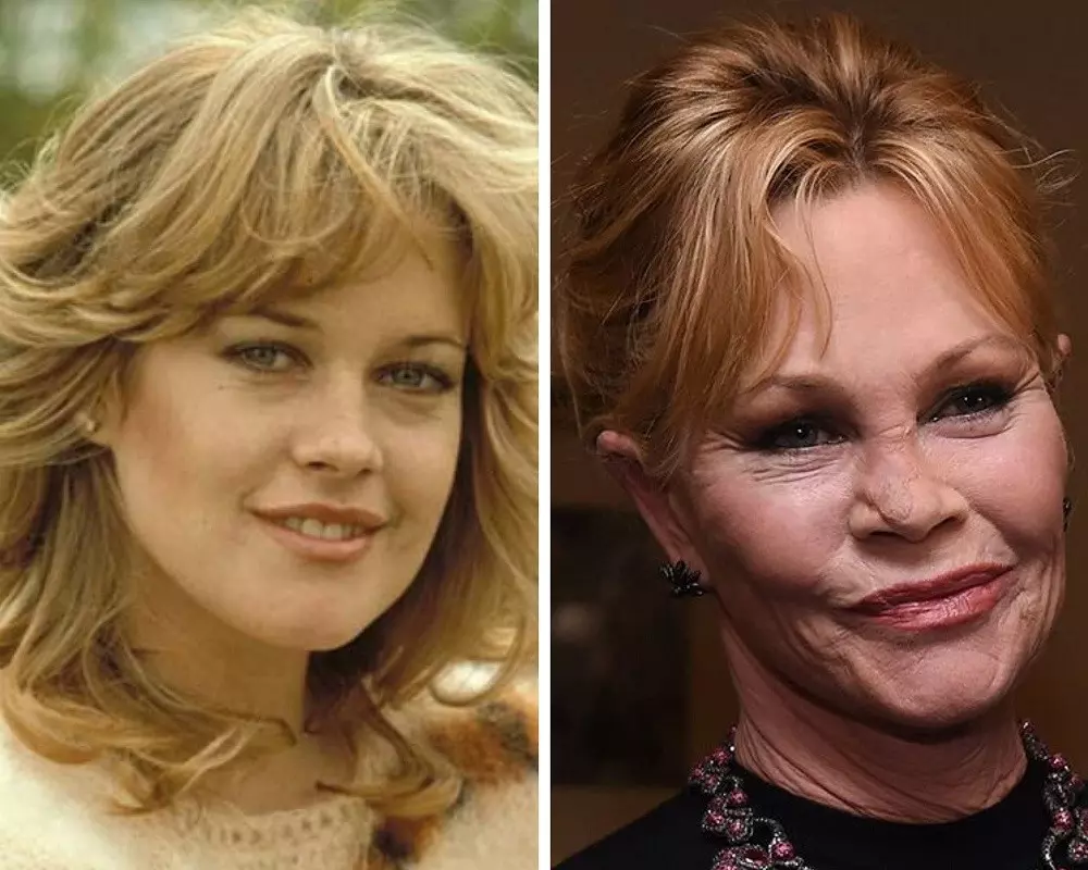 - Мелани Гриффит. Она до неприличия увеличила губы, лицо стало вульгарным. После попытки вернуть им прежний объем лучше не стало. Губы сузились, но естественного вида не приобрели.