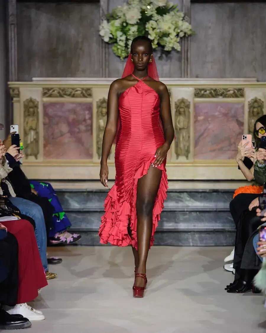 Красное платье от Alexander McQueen осень-зима 2023-2024