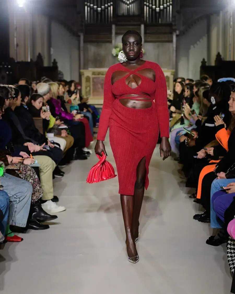 Красное платье от Bottega Veneta осень-зима 2023-2024