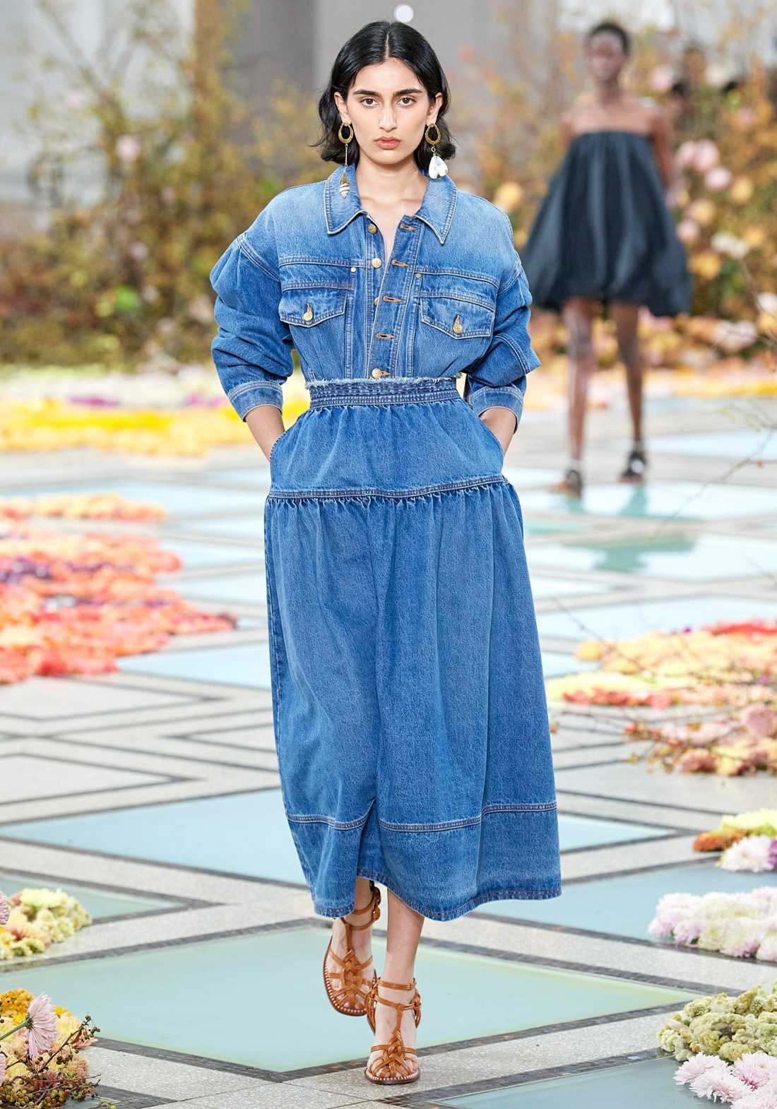 Еще один ностальгический силуэт, возвращающийся в трендовый цикл, — длинные джинсовые юбки. Они занимают видное место не только в коллекциях весна-лето 2023 года, но и в уличном стиле вне Недель моды.