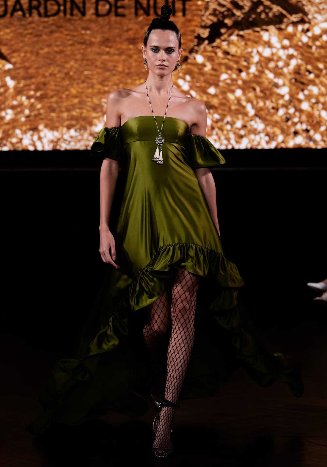 Очень модный американский дизайнер Рауль Лопес придает шоу Luar драматический оттенок с помощью ожерелий, воротников и украшений для обуви из эффектных перьев, как и Виктория Бекхэм, чья коллекция, вдохновленная Эдит Бувье, эксцентричной кузиной Джеки Кеннеди, включает перья, вложенные в декольте или впадины на спине.