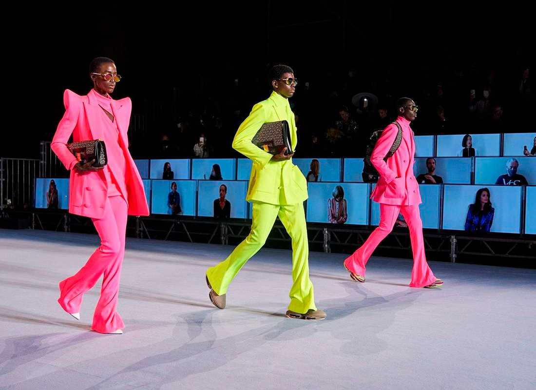 Наконец, после нескольких показов, принявших формат музыкальных фестивалей, Оливье Рустен вернулся к более интимной планировке и представил коллекцию Balmain, вдохновленную архивами Дома, сочетающую большие банты, горошек и широкополые шляпы. Легкий и элегантный стиль — дань уважения модельеру Пьеру Бальмену и его «новому французскому стилю».