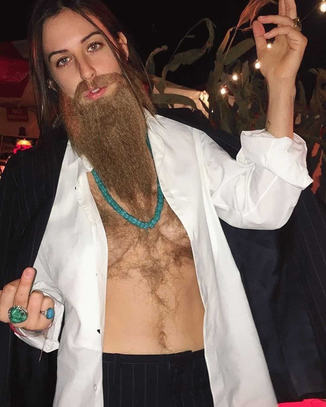 Особенно постаралась Скаут, которая на один вечер перевоплотилась в мужчину по имени Скотт. Девушка превратилась в длинноволосого бородача с густой растительностью на груди. Для этого Скаут щедро наклеила искусственные волосы на собственную обнаженную грудь. Сфотографировавшись с голым торсом в образе Скотта, Скаут опубликовала пару снимков в своем Инстаграме.