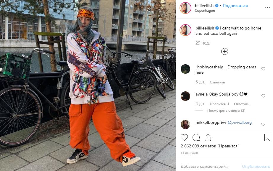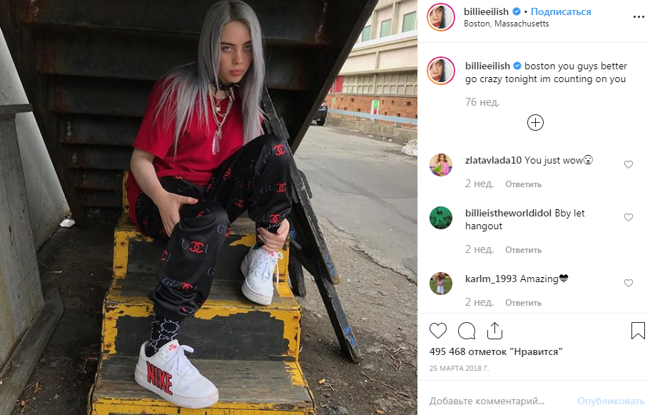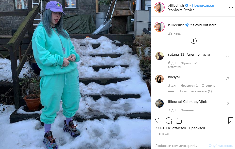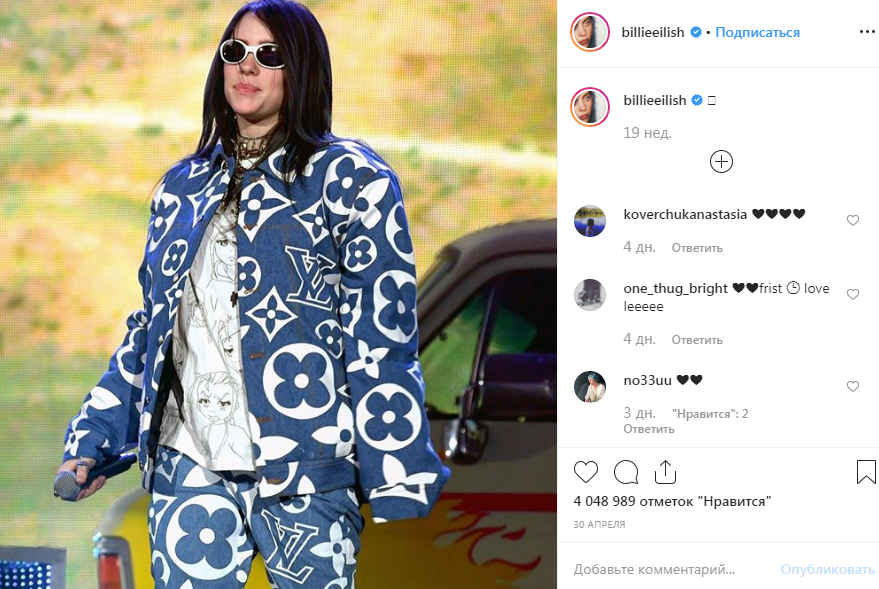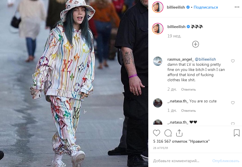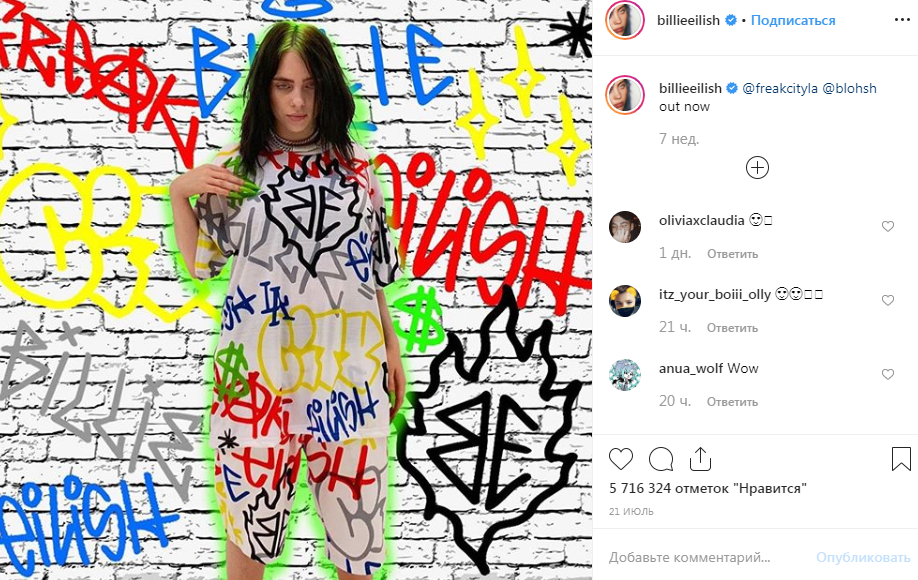 Билли Айлиш также привлекает внимание своим неповторимым образом. Она не боится выделяться и экспериментировать со стилем