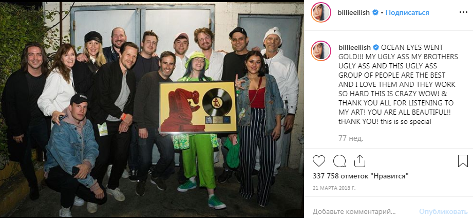 В 2020 году Айлиш выиграла 4 важнейшие номинации Грэмми, о которых мечтают все певицы. Еще отметили наградой ее поп-альбом. Такими достижениями может похвастаться не каждый, в этом и состоит феномен певицы.
