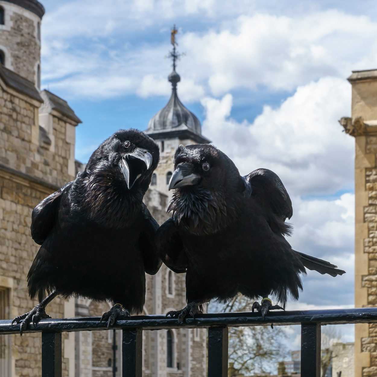 В центре Лондона на полном государственном обеспечении живёт небольшая группа чёрных воронов. Впервые птицы появились здесь в XVII веке и с тех пор за ними пристально следят и ухаживают. Считается, что если вороны покинут Тауэр, рухнет и сама башня, и Британская монархия. Историки считают, что птицы облюбовали место только потому, что любили поживиться жертвами правосудия после публичных казней. Сегодня птиц кормят сырым мясом, сухим кормом и иногда дают кроликов с неснятой шкуркой, что полезно для здоровья пернатых. По старинному обычаю, чтобы избежать краха монархии, воронам подрезают маховые крылья. Это никак не сказывается на их здоровье, но не позволяет улетать далеко.