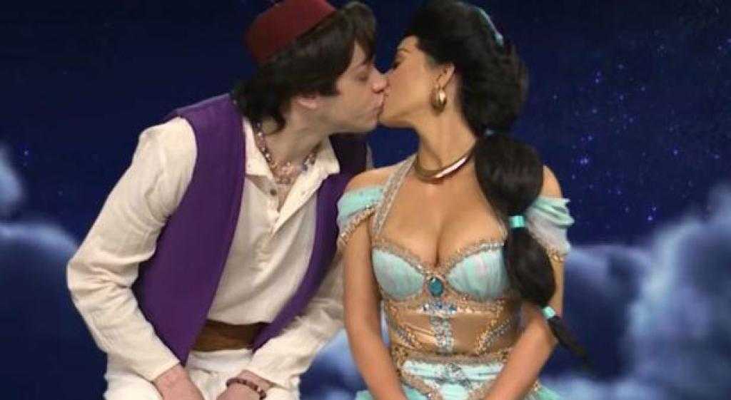 It was just a short sketch and occurred in the episode where Kim Kardashian, Davidson’s now-girlfriend, was hosting. The focus of the sketch was to present Aladdin as a hormonal young man who couldn’t handle himself around Jasmine’s tremendous beauty. Jasmine, of course, was played by Kardashian.
