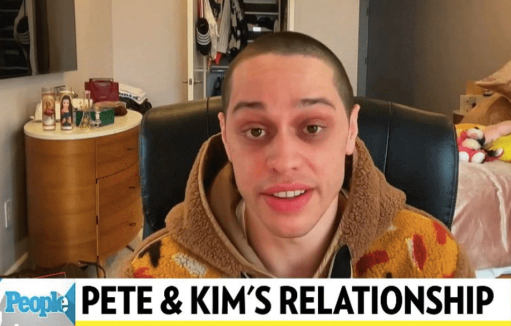 Later in the interview, Davidson was asked about a sneaky accessory seen behind him in his home—a candle featuring the face of his girlfriend.
