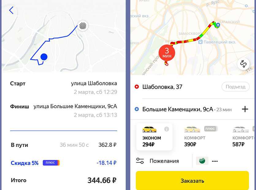 Ради эксперимента, мы решили посмотреть стоимость поездки на «Яндекс.Драйв» и «Яндекс.Такси». По одним и тем же маршрутам, цифры получились практически одинаковые.