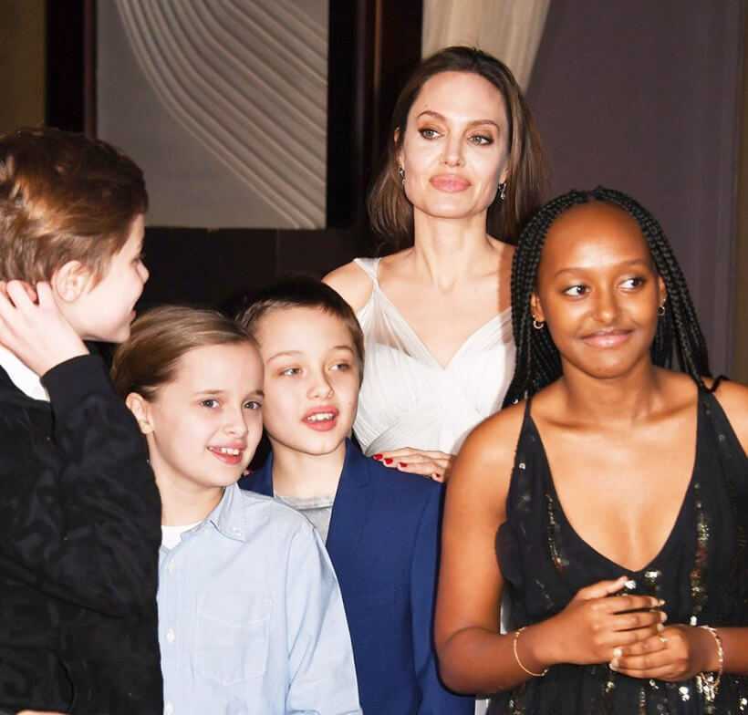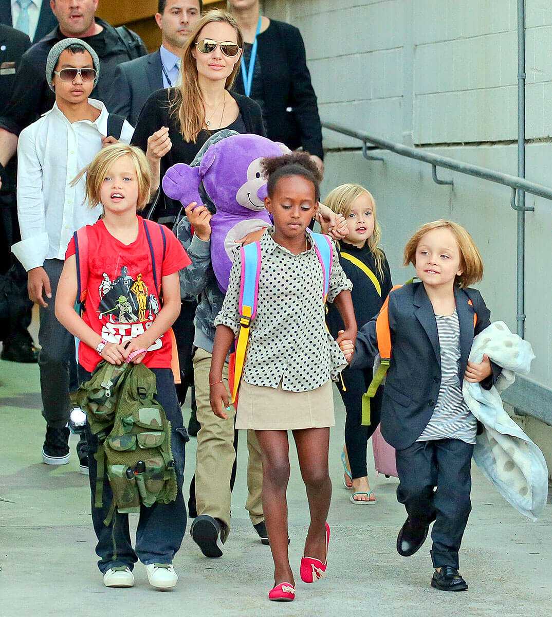 В поездках актрису сопровождали ее дети: Шайло, Мэддокс, Захара и близнецы Вивьен и Нокс.