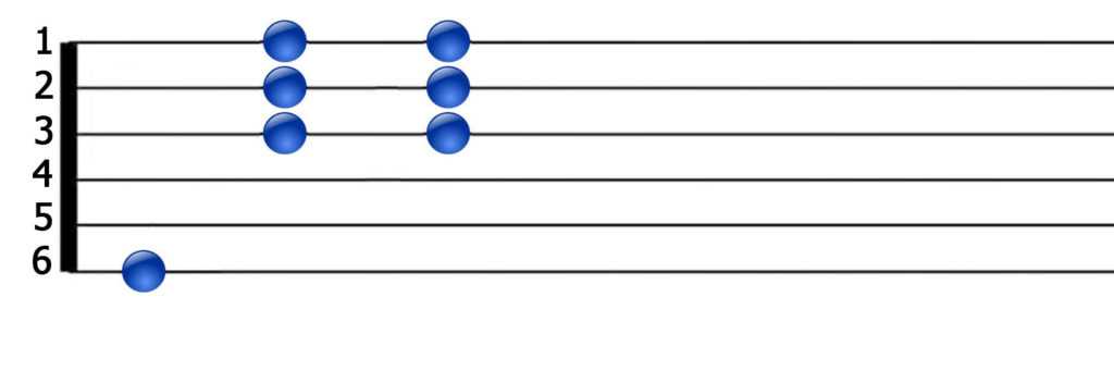 Этот вид подходит уже для более продвинутого изучения игры на гитаре. В данных схемах задействуется большее количество струн и производится большее число движений.