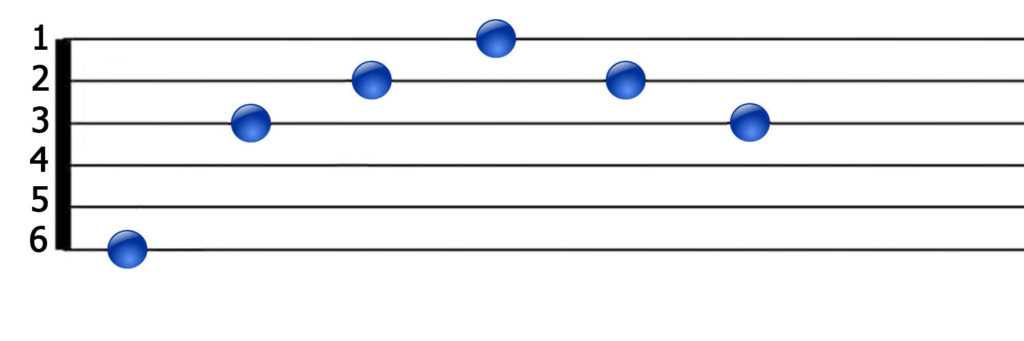 Начало – басовая струна, затем 3 – 2 – 3 – 1 – 3 – 2 – 1. Если посмотреть внимательно, то схема имеет 2 одинаковых повторяющихся рисунка с разделением первой струной.