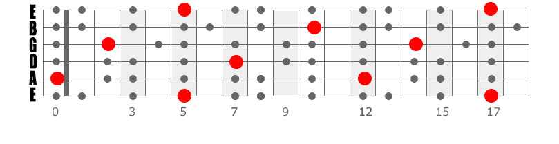 так же универсальна и применима к любой известной тональности. Вот, к примеру, гамма E.