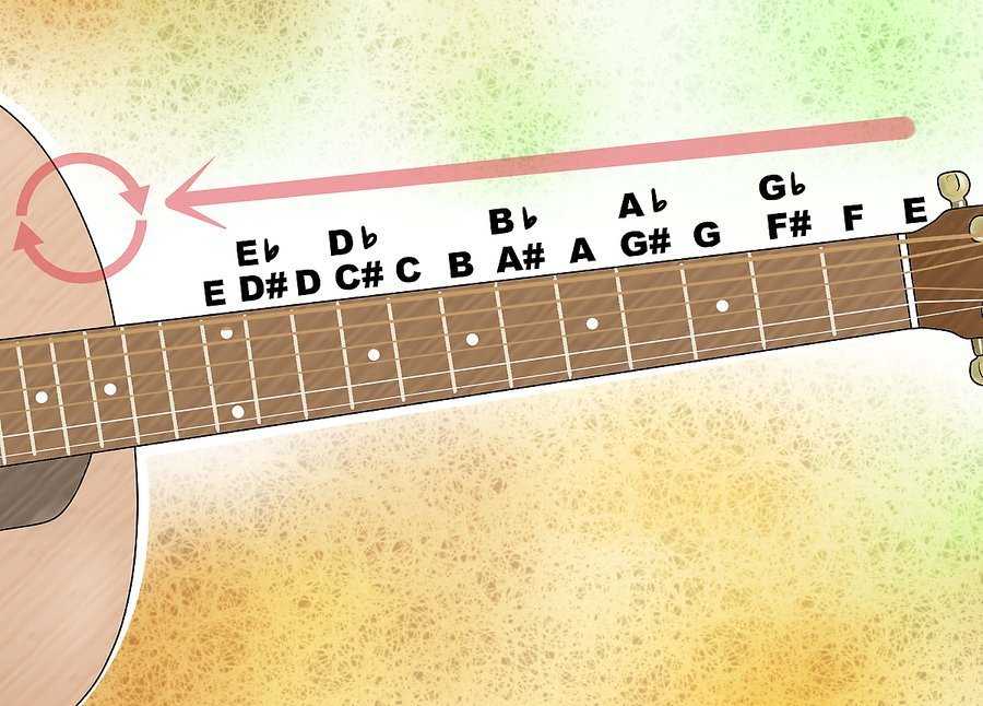 Как для первого, так и для второго способа необходимо, прежде всего, выучить все ноты на грифе гитары. Стоит запомнить простую закономерность: расстояние между двумя соседними ладами равняется полутону.
