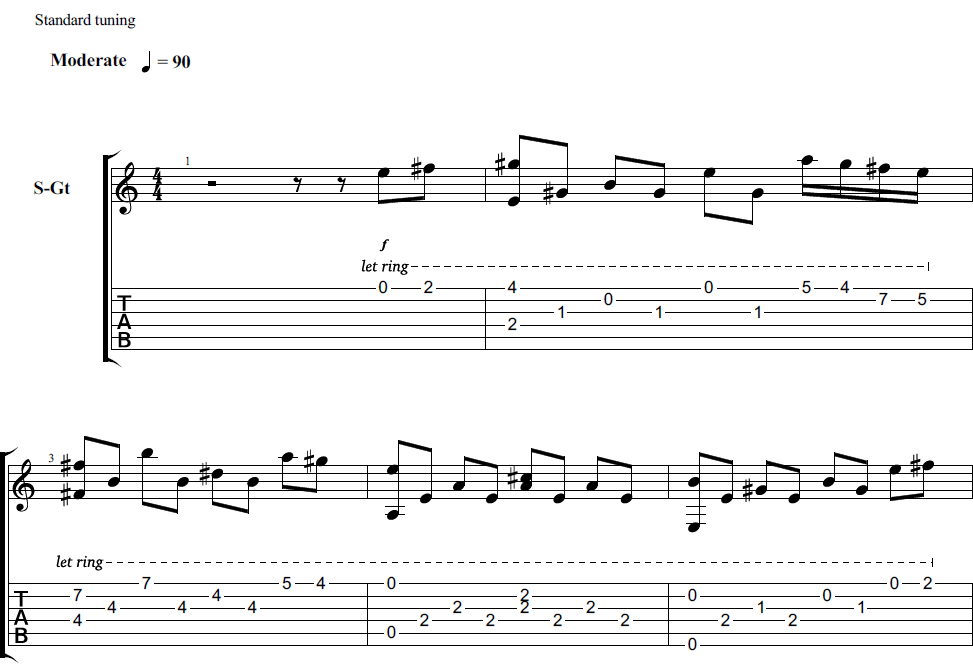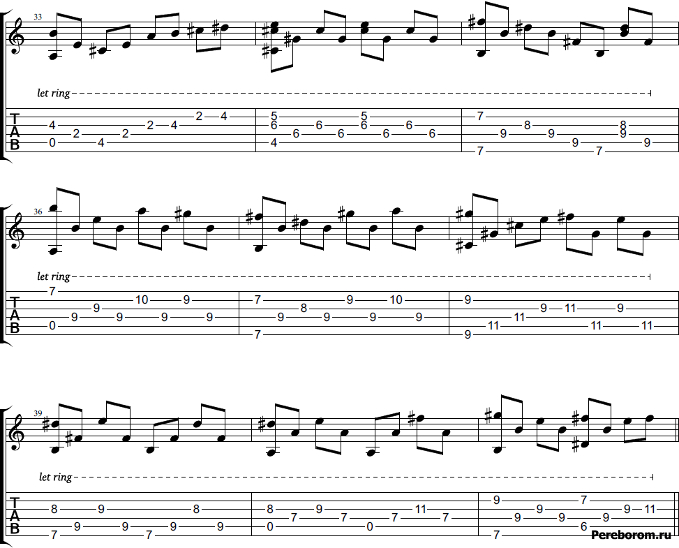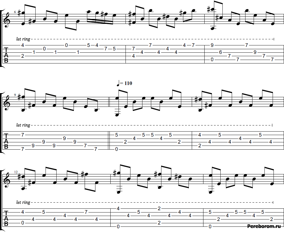 В табах «Титаник» на гитаре обратите внимание, что многие ноты имеют маркировку Let Ring. Это значит, что они должны звучать даже после того, как были извлечены в прошлом такте