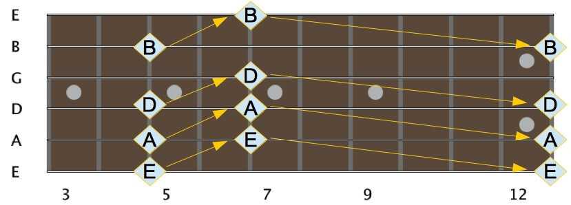 | Open E | e1 | b1 | e2 | g#2 | b2 | e3 |