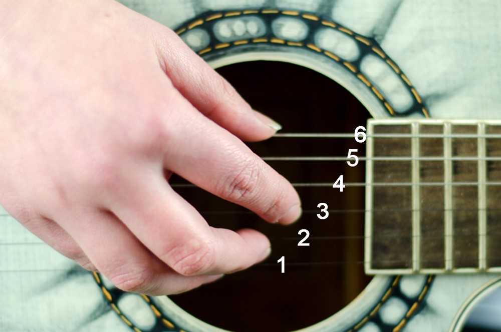 Нумерация струн производится снизу-вверх по мере их расположения на гитаре. Нижняя – первая, верхняя – шестая.