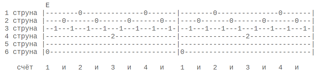 Один из часто используемых. С его применением играют множество песен. Б3231323_Б3231323_Б323… Услышать звучание восьмерки можно, сыграв по схеме: