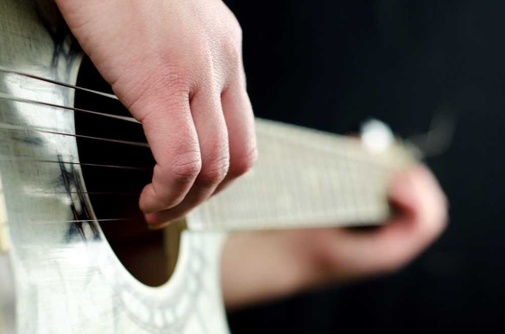 Согните пальцы и их подушечками зажмите любой аккорд. Если вы делаете это впервые – то, скорее всего, правильно поджать струны у вас не получится. Давите на струны до тех пор, пока не получите четкий звук без какого-то дребезжания, но не перестарайтесь, и не прижимайте их сильно к накладке грифа – иначе звук сильно исказится. Скорее всего, подушечки начнут болеть – и это нормально, просто продолжайте ставить аккорды, пока на пальцах не появятся мозоли, и они не привыкнут к тому, что сталь их режет и трет. Не ставьте пальцы на порожки ладов – иначе будет возникать противное дребезжание.