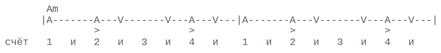 - На зажатии одного аккорда делается 4 двойных движения вверх, вниз.