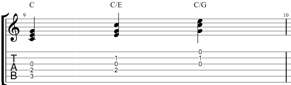 Мажорных аккордов с басом на 5 струне — аппликатура C