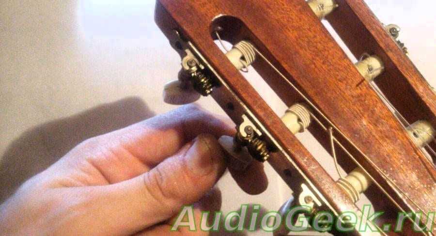 - Необходимо быть осторожным при настройке шестиструнной гитары, так как она имеет большое натяжение.