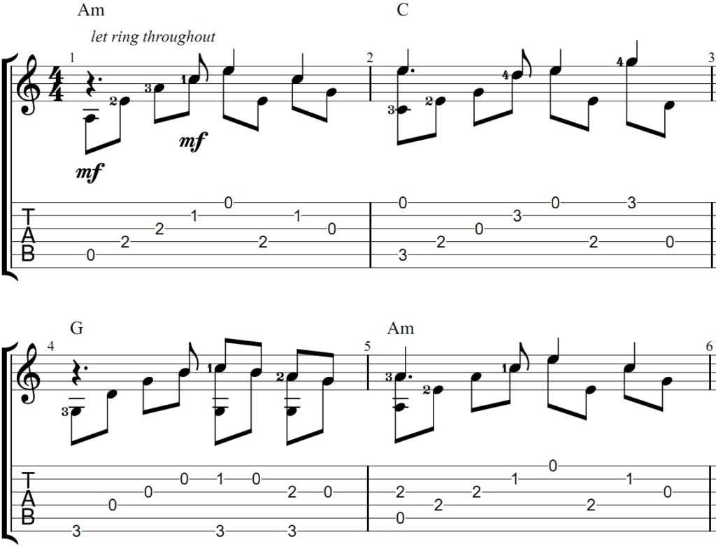 из шести наиболее удобных для исполнения на гитаре тональностях: ми-минор, ля-минор, ре-минор