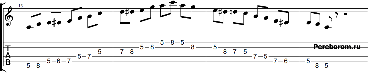 A (ля) минор блюзовая гамма — 6 позиций