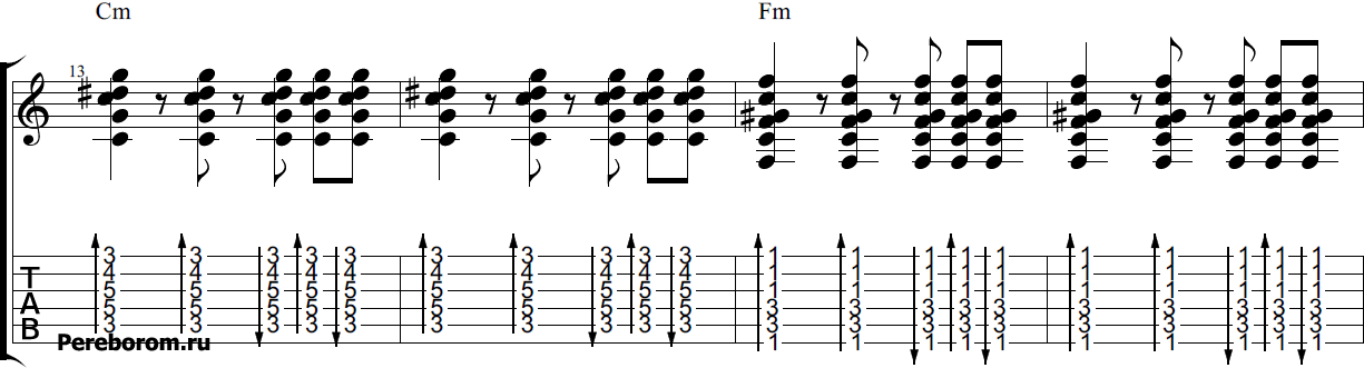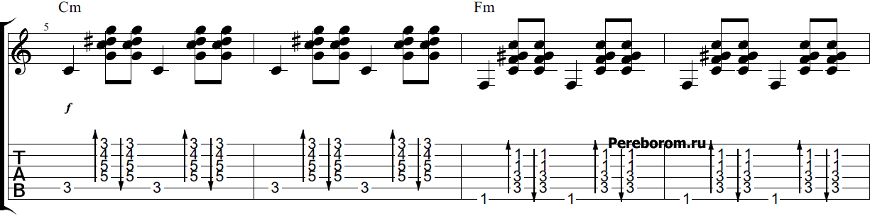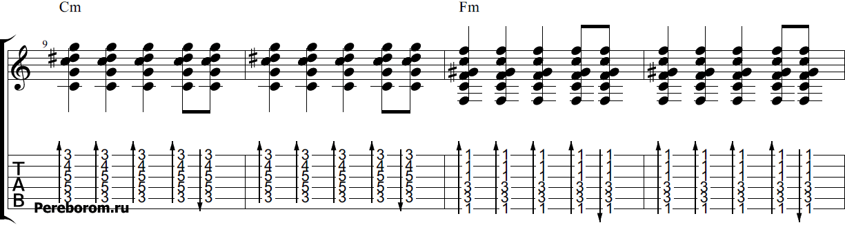 Также в композиции «Туман», бой можно объединить из первого и третьего примеров. Получится достаточно оригинальный рисунок, который как раз хорошо подчеркнет основную мелодику песни. Чтобы убедится в этом, просто прослушайте аудиофрагмент ниже и попробуйте повторить его на своей гитаре.