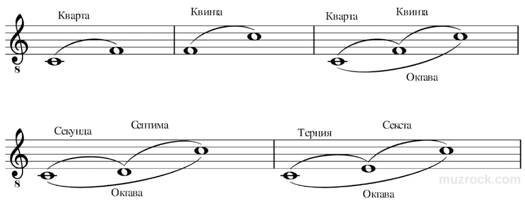На рисунке ниже, схематически представлены изображения как нот так и пауз, с присущими им названиями: