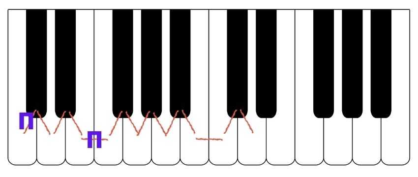 Иногда в гамме ноты идут вверх по одной гребенке, а вниз – по другой.