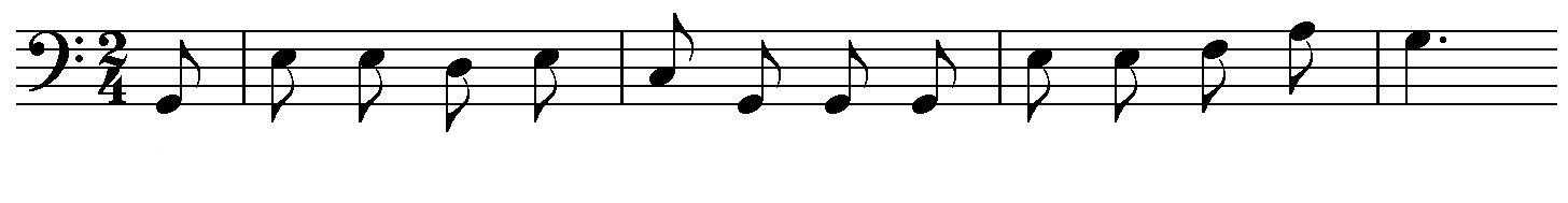 Мы собираемся переместить песню на большую треть вниз. Рекомендуется немедленно определить новый ключ. Сделать это довольно просто: мы знаем исходный ключ и, следовательно, знаем корень; переместите основной тон в мажорную третью и опустите к ноте F. Итак, наш новый ключ — фа мажор. И теперь, когда мы переместили все наши ноты на большую треть, наша песня начала играть и выглядеть так:
