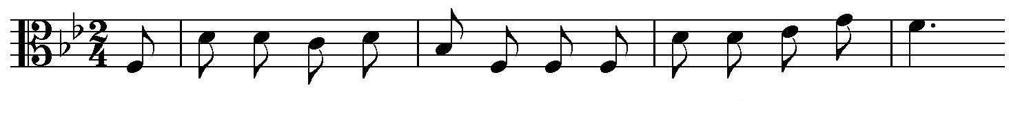 Изменим скрипичный ключ на бас и альт. Таким образом, песня теперь появляется в тональности до мажор и си-бемоль мажор соответственно.