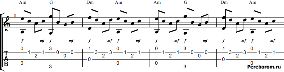 Для любителей игры пальцами и перебора, мы предлагаем 2 варианта перебора, которыми также можно играть песню. В этом разделе мы подобрали и куплет, и припев.